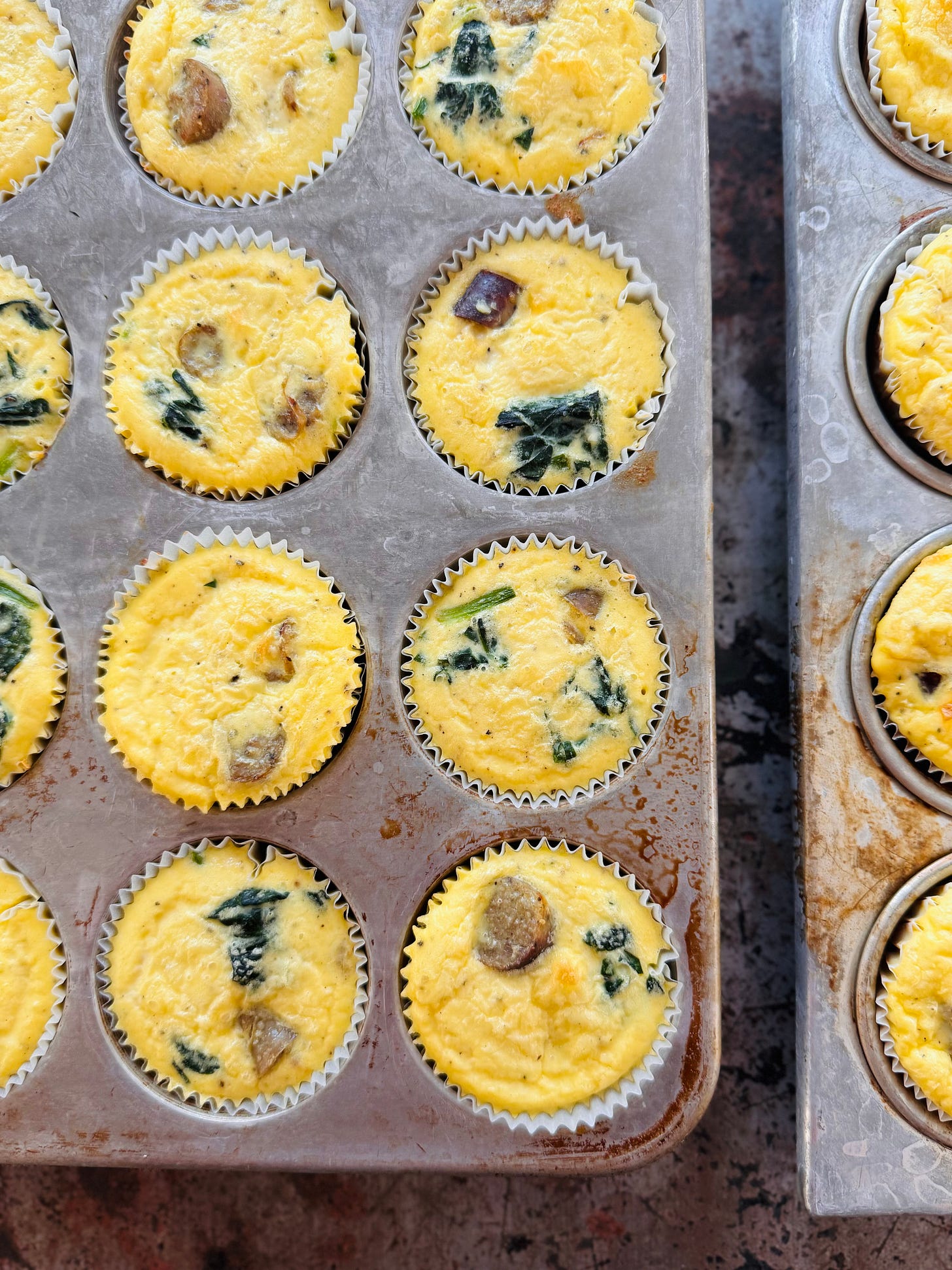 They are also the perfect thing to batch cook because they reheat so well and are so delightfully portable and convenient. Plus, why go to the trouble to make just a couple and not a whole tray? And why make one tray when you can fit two on your oven rack and use an entire dozen eggs??!!?