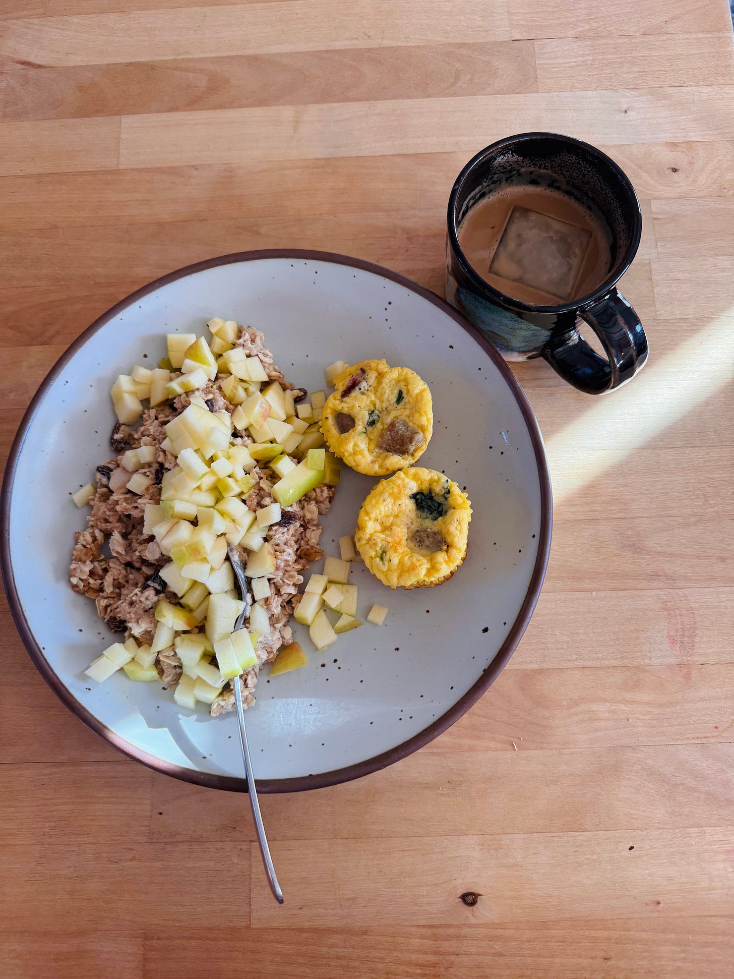 Egg bites are just eggs blended with cottage cheese, seasoned simply with salt and pepper and baked in muffin tins. They are the ideal place to put all of your odds and ends (random cheese, vegetables, etc.).