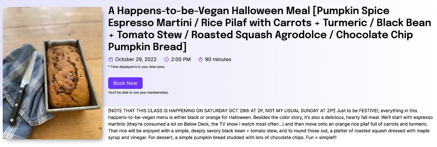 *SATURDAY* OCTOBER 29: A Happens-to-be-Vegan Halloween Meal