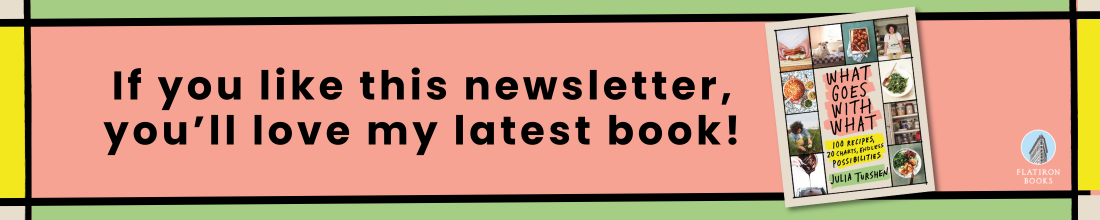 Lastly, one of my all-time favorite recipes ever: the Green Chile Braised Chicken Thighs with Pinto Beans from Simply Julia, one of the first recipes I shared in this newsletter FOUR WHOLE YEARS AGO. Bring this is in the pot you cooked it in along with fun toppings (a tub of sour cream, a jar of pickled jalapeños, some chopped cilantro, etc.) and a bag of tortilla chips for scooping it all up with. Maybe a pitcher of margaritas. The easiest meal ever and so, so satisfying and fun to share with friends. And cheap and easy to transport!