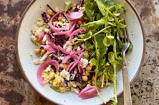 >> kale salad plus lentil + rice soup / homemade veggie burgers / mujadara with cucumber-yogurt salad